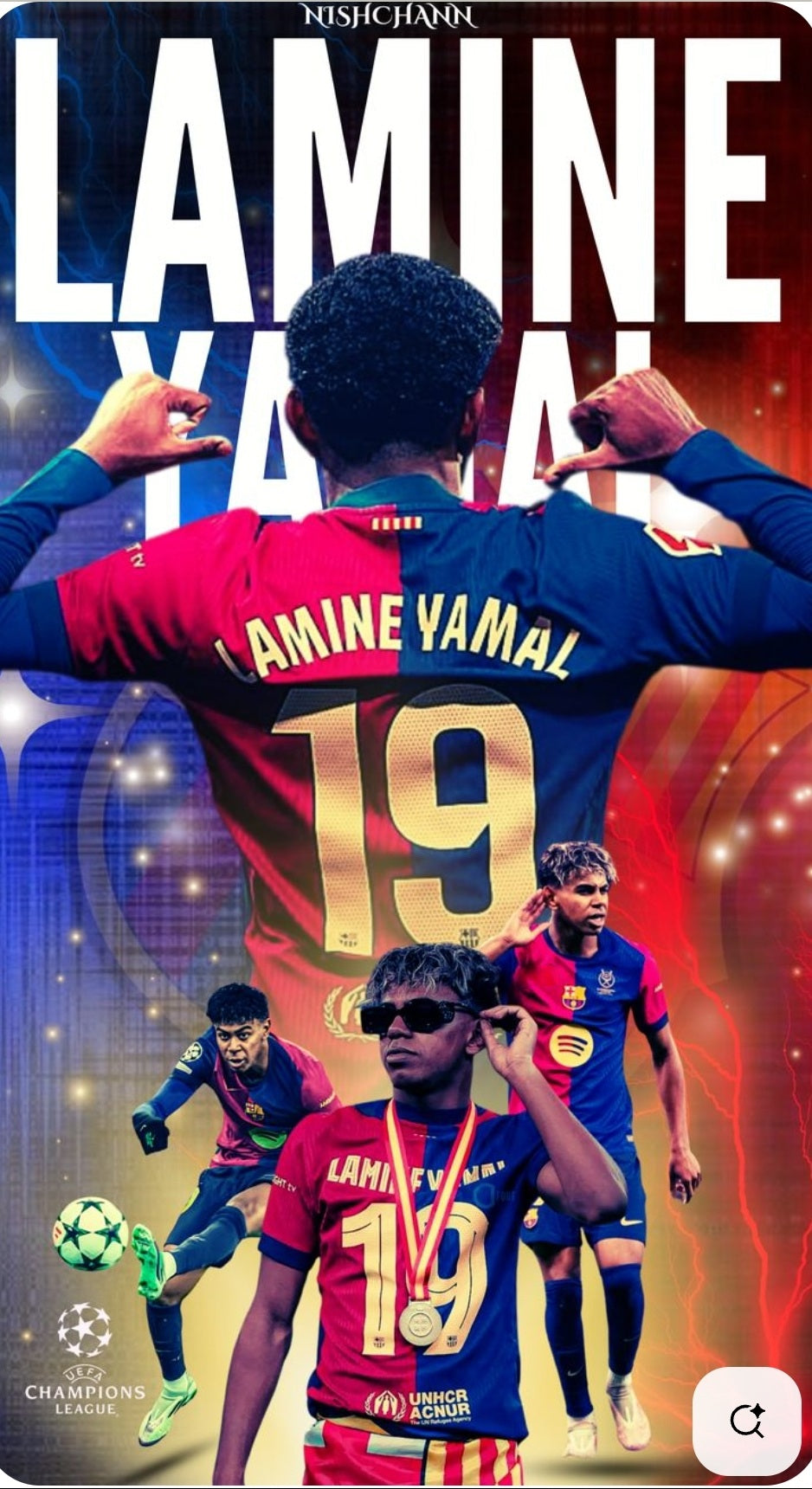 Футболна Топка Барселона Yamal Синя Шампинска Лига Ямин Ямал