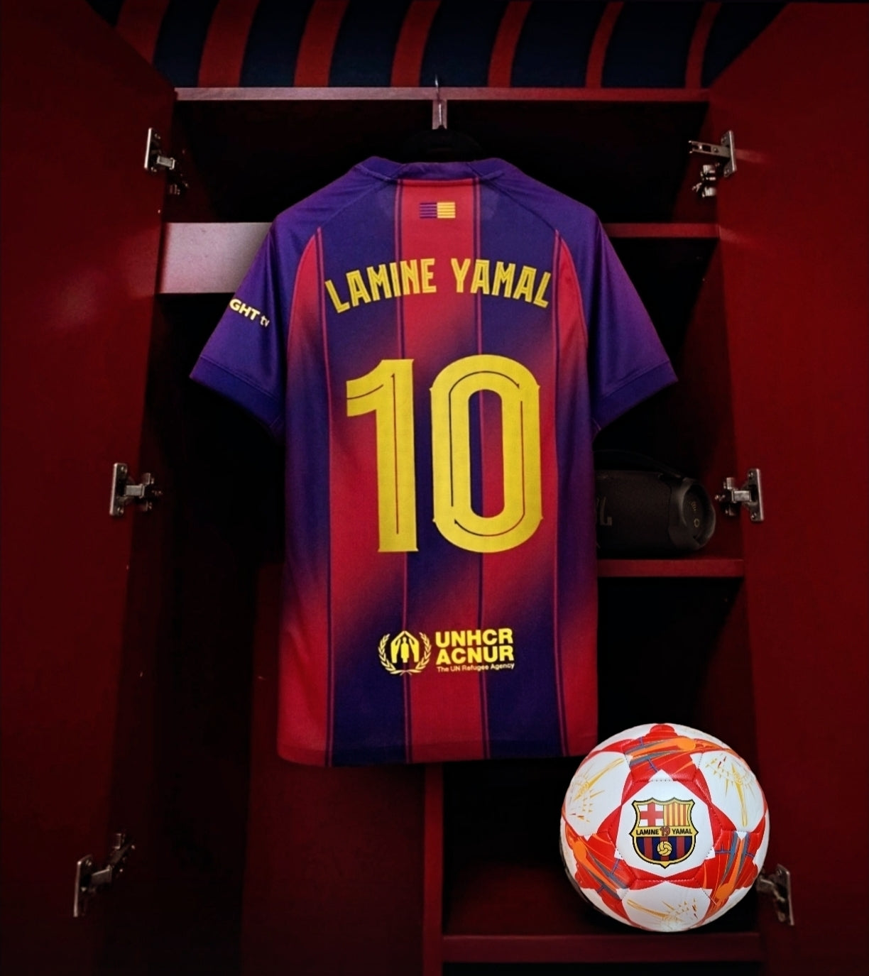 2025 Детски футболен екип на Ламин Ямал, Барселона Червен Син Lamine Yamal 19